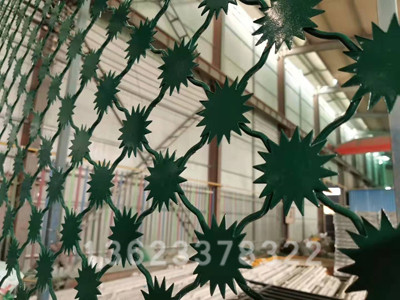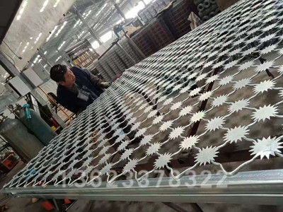 梅花刺片隔離網(wǎng)又叫沖壓刺隔離網(wǎng)、太陽花刺隔離網(wǎng)、梅花刺片護欄網(wǎng)或梅花刺網(wǎng)。梅花刺片隔離網(wǎng)一般用于監(jiān)獄大門,探監(jiān)門,人員通道兩邊的隔離網(wǎng)、看守所、拘留所、戒毒所、未管所、場區(qū)圍網(wǎng)等。監(jiān)獄梅花刺隔離網(wǎng)是一種常用的監(jiān)獄隔離網(wǎng)。